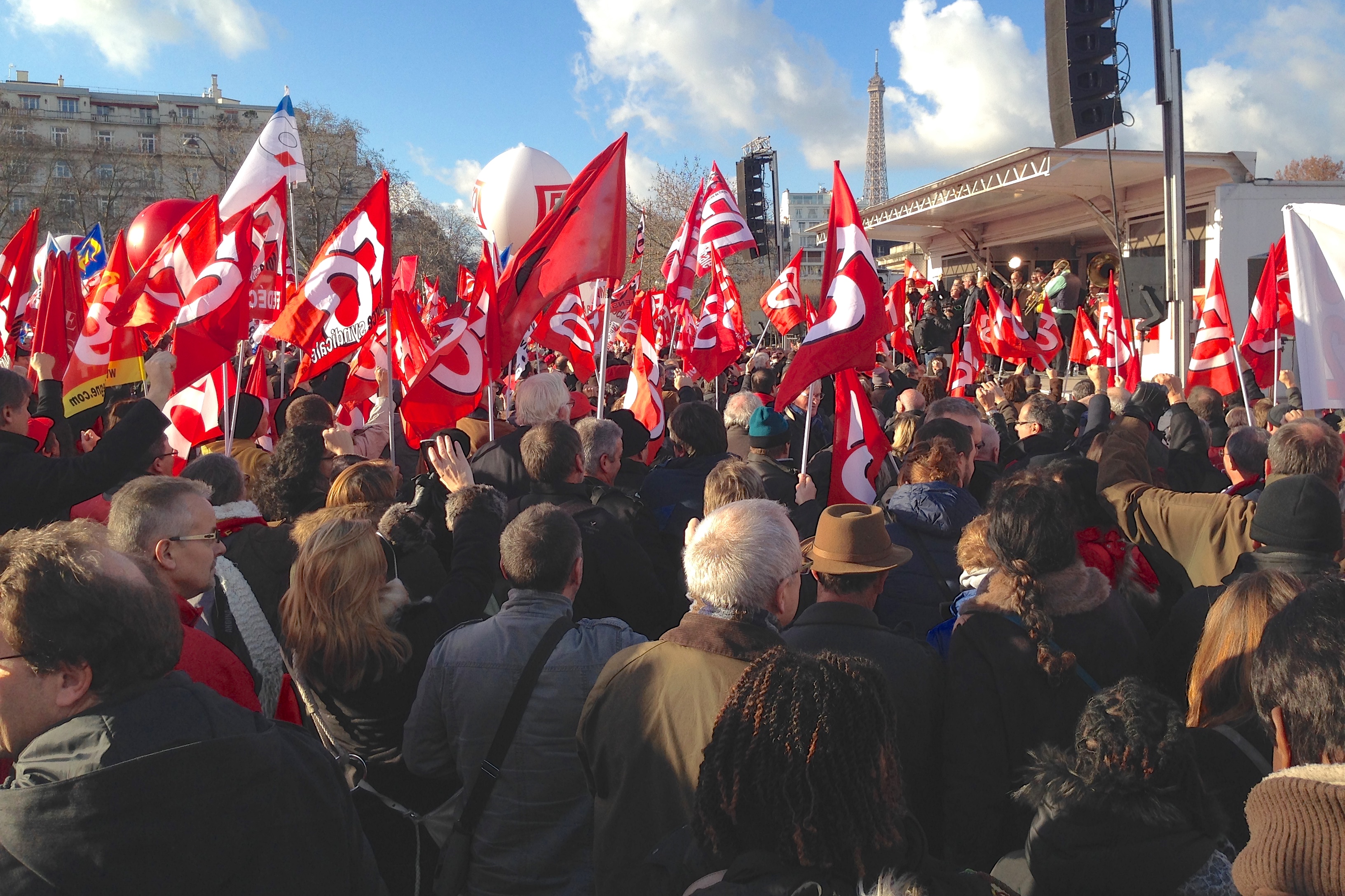 Plus de 8 000 délégués FO venus de toute la France et de tous les secteurs professionnels se sont rassemblés le 16 décembre à Paris, place Vauban, dans le quartier des ministères et non loin de l’Assemblée nationale contre le pacte de responsabilité du gouvernement et du patronat. Le Secrétaire général de la Confédération, Jean-Claude Mailly, a fustigé la politique pro-patronale du gouvernement, réitéré sa demande de retrait du pacte de responsabilité et renvoyé les militants vers le Congrès confédéral de début février qui devra prendre les décisions qu’impose la situation. La question d’une grève interprofessionnelle pour le retrait du pacte est posée.