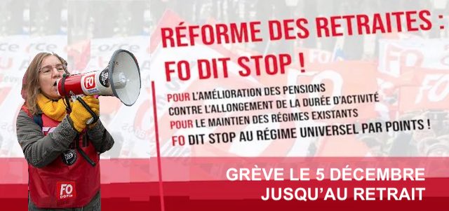 La Confédération Force Ouvrière a appelé à faire du 5 décembre une première journée de grève et de mobilisation dans l’unité d’action syndicale la plus large.